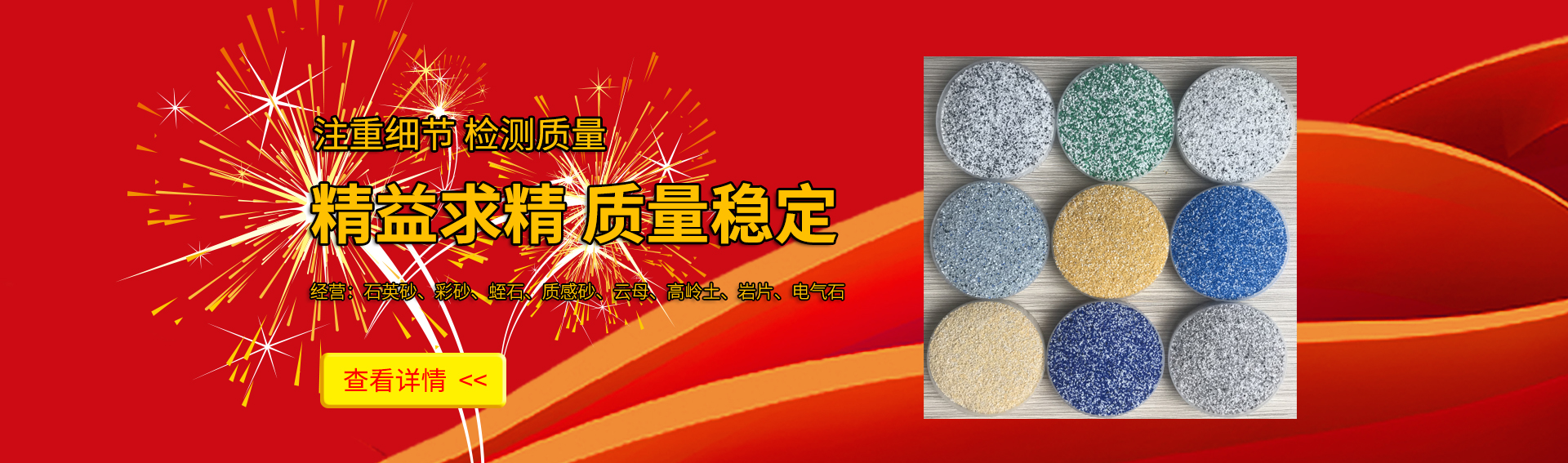 靈壽縣三信礦產(chǎn)品加工廠(chǎng)廠(chǎng)址坐落于241省道旁560公里處,距河北省會(huì )石家莊50公里,首都北京260公里,距天津港320公里,交通便利,通訊發(fā)達。 2010年我廠(chǎng)引進(jìn)國際先進(jìn)生產(chǎn)設備,精進(jìn)生產(chǎn)工藝,終形成集礦山篩選、開(kāi)采、生產(chǎn)、銷(xiāo)售為一體的大型礦產(chǎn)企業(yè)。 我廠(chǎng)專(zhuān)業(yè)生產(chǎn)彩砂,巖片,彩石,玻璃砂,燒結彩砂,鵝卵石,石英砂等各類(lèi)礦產(chǎn)品。均可來(lái)樣定制加工。 2018年我廠(chǎng)建立了擁有三座生產(chǎn)基地的三角形框架體系,其中擁有(河北生產(chǎn)中心)(河南灰玉生產(chǎn)中心)(湖北菊花黃生產(chǎn)中心)。 歡迎各界人士蒞臨工廠(chǎng)參觀(guān)指導。