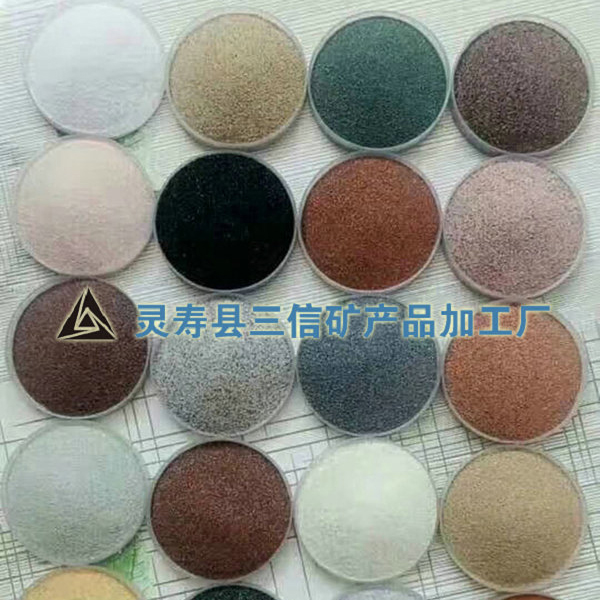 彩砂的常見(jiàn)規格:1-3mm、2-4mm、10-20目、20-40目、40-80目、80-120目、120-180目、325目等。